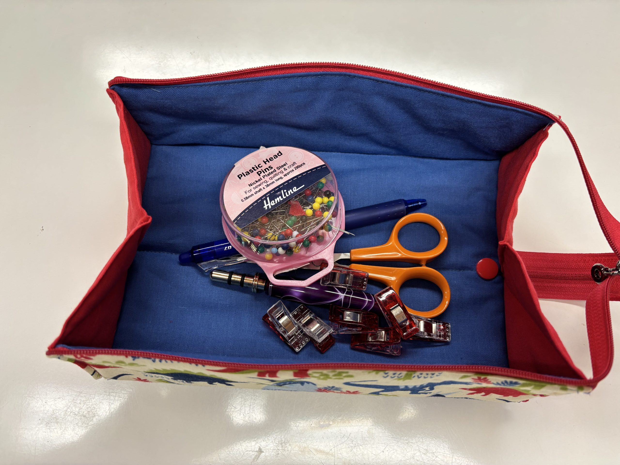 This workshop is to make a zipped pouch that folds out to form a tray. A very handy project for pens, sewing notions, make up etc,